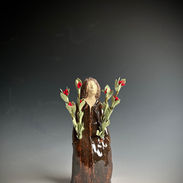 The last kiln is now unloaded and the last 11 pieces posted here are from that cone 9/10 gas reduction kiln. As I ended my clay making, I returned to build the figurines and remembered that those were the pieces I most enjoyed making...the women all part of a story in a way.